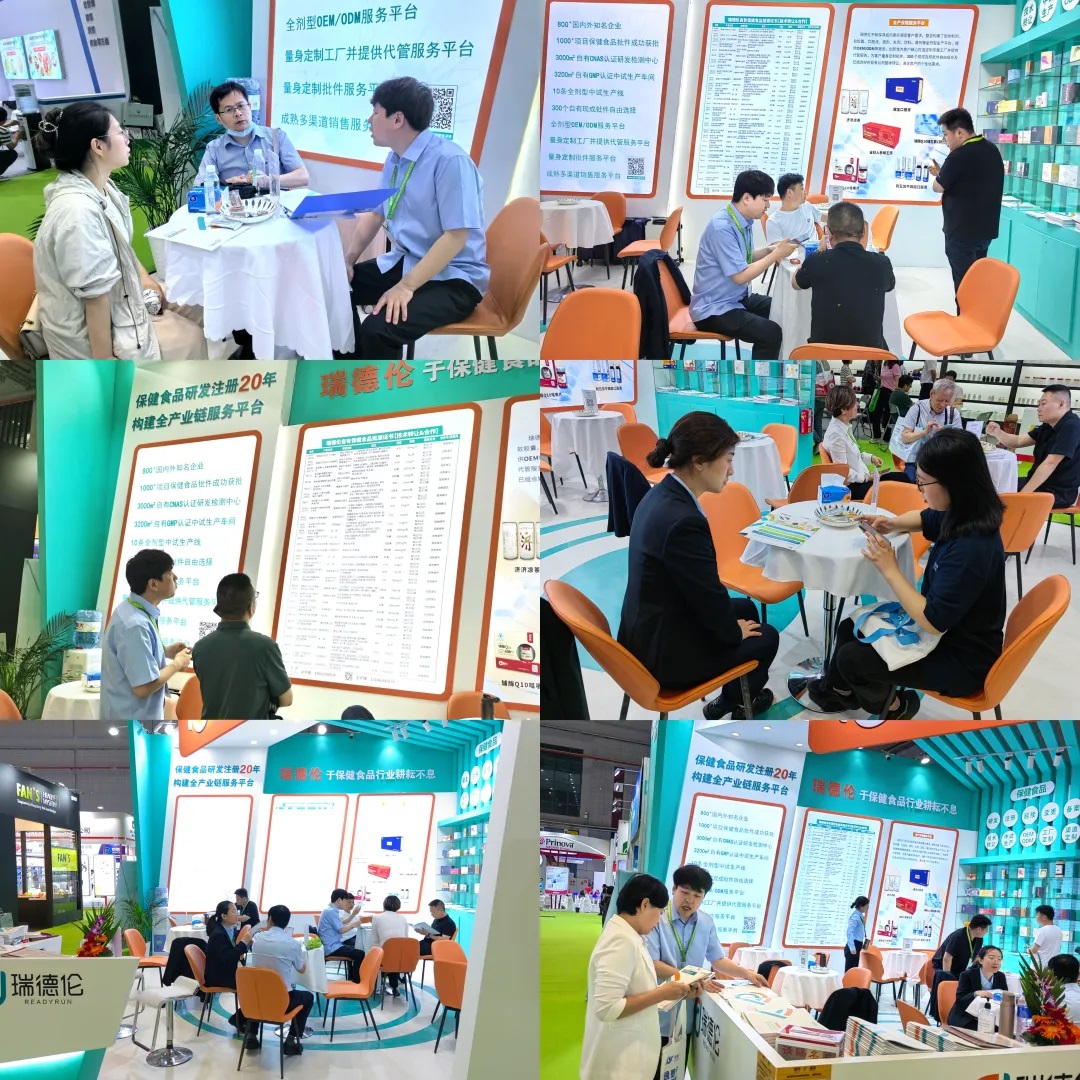 此次,瑞德伦携300个自有现成保健食品批件、3000m2通过CNAS 认证的自有研发检测中心、3200m2通过保健食品 GMP 认证的全剂型中试生产线,以展会平台为桥梁,向国内外新老客户全面展示我们在保健食品研发注册服务的基础上,进一步提供保健食品全剂型的中试生产,ODM、OEM及工厂定制与代管的服务,并共同交流探讨行业的发展趋势。
